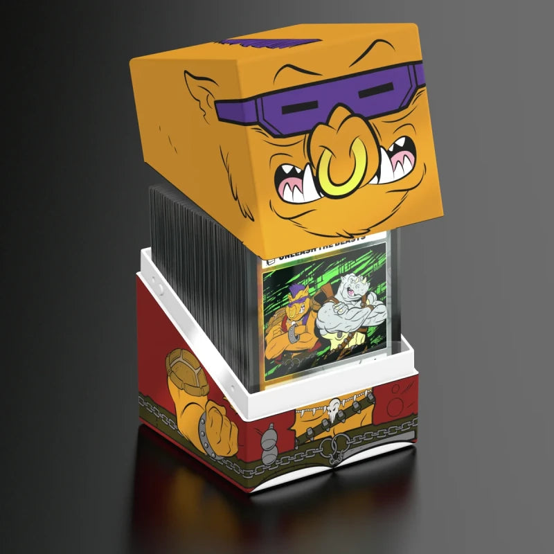 Collectible box for storing TCG decks, tabletop gaming accessories, and/or collectibles. The Casey Jones Squaroe from the Teenage Mutant Ninja Turtles™ edition holds up to 100 cards in double protective sleeves if used as a deck box. Squaroes are made from 78% renewable recources and fit perfectly into the separately available Collectors Case.