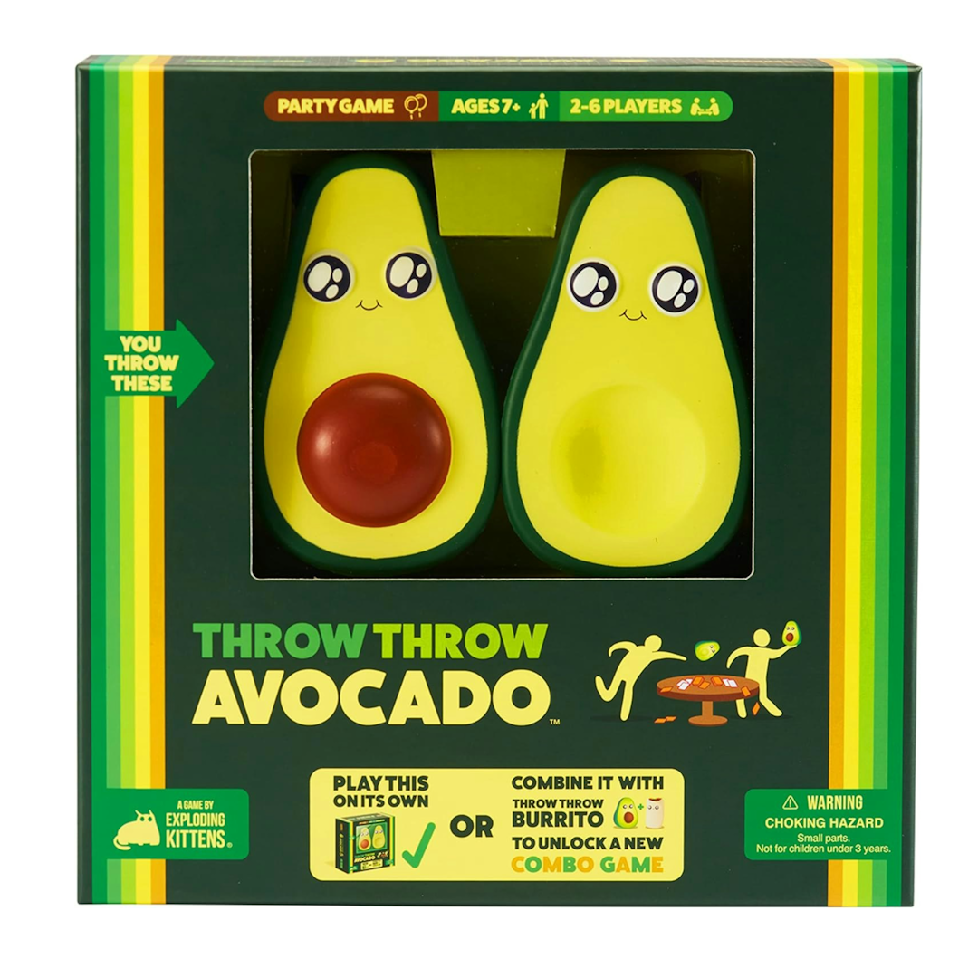 Throw Throw Avocado is unlike any game you’ve played before. In this dodgeball card game, go head to head with your opponents collecting cards while throwing and avoiding squishy, adorable avocados. Play Throw Throw Avocado as a standalone sequel, or use the BONUS deck of cards included and combine them with the cards from Throw Throw Burrito to unlock a new combo game using all four throwables!
